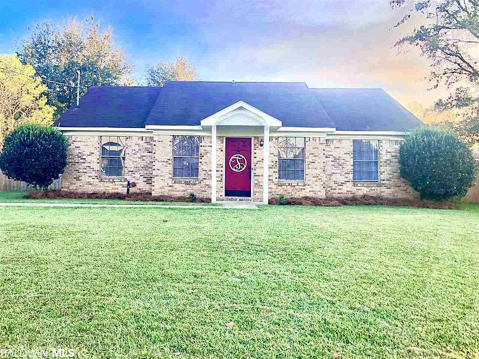 Cute, Well Maintained 3 bedroom 2 bath Brick Home on a Cul-de-Sac. The Living Room is Generous in size with a raisied ceiling. All Bedrooms have a walk-in closets and there is both a linen closet and a coat closet in the hall. Laundry Room is big enough for a freezer and has a pantry closet. The backyard is fenced and has a storage building. The Huge Patio is partially covered. A/C & Hot Water Heater are less than 2 years old. Perfect Starter home or if your looking to downsize. Extended driveway offers plenty of parking. Don't miss this affordable home in Central Baldwin County!