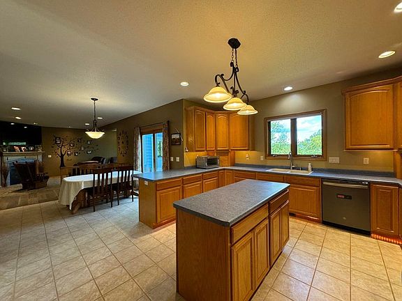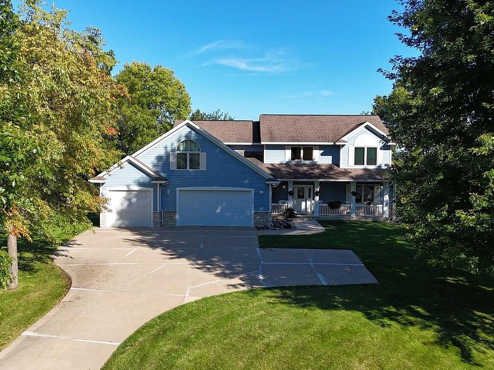 Beautiful custom built home located on .74 acres. 3-4 bedrooms, 2.5 bathrooms and an attached 3 car garage. Large kitchen with island and an abundance of cabinets and pantry. Formal dining room and formal living room. Cozy family room with fireplace and access to the deck. Primary bedroom has a sitting room with fireplace, two walk in closets and a private bathroom with a jetted tub. Enjoy movie night in the theatre room. Lower level is partially unfinished and is plumbed for an additional bathroom. Main floor laundry and an irrigation system are a plus!
