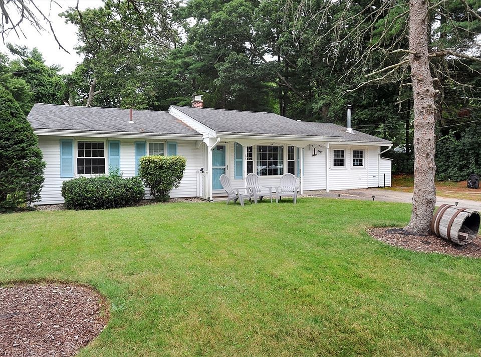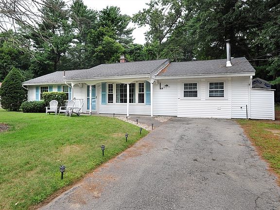 MOVE IN READY Campanelli ranch perfect for someone looking for 1 level living. Large kitchen has beautiful white cabinets, butcher block island with seating and newly installed dishwasher. 3 good sized bedrooms with ample closet space. Bonus room with wood stove perfect for formal dining area, office or family room. Laundry relocated out of kitchen to separate laundry/storage room, newer oil tank, new water filtration system, enlarged storage shed, some custom blinds. Walk out the sliders to outdoor patio and large, private wooded backyard where you can enjoy sitting around the fire pit making s’mores or just spending time with family! House is well maintained and located in desirable area, walking distance to school. Minutes to Rt 24. OPEN HOUSE SATURDAY, 9/14 11-1 PM