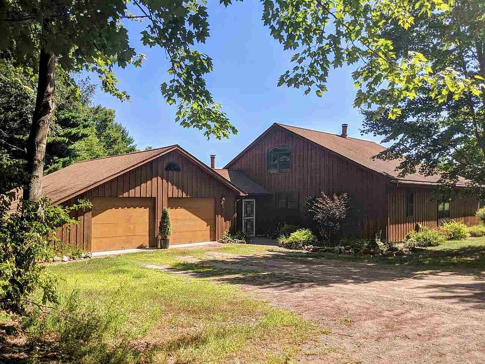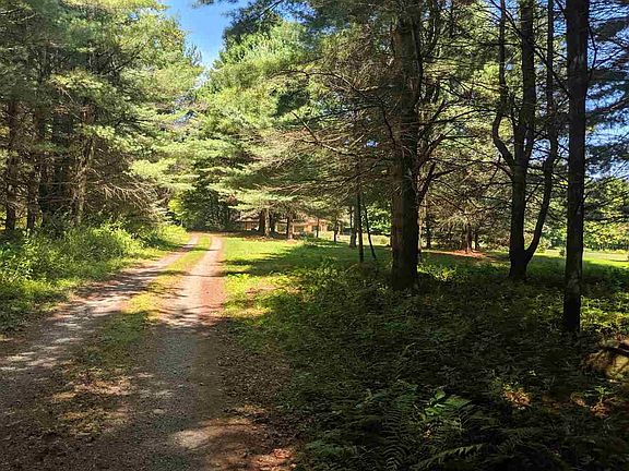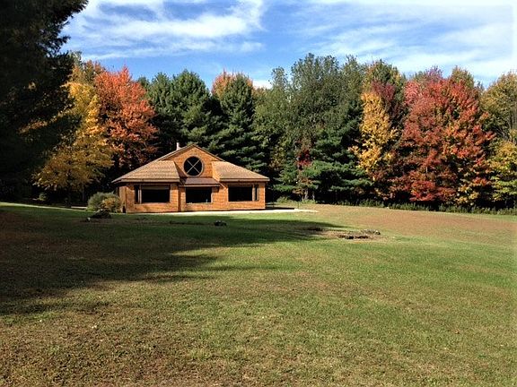 On just over 50 acres, this open concept contemporary has huge windows for unobstructed views of its two ponds, woods, and wildlife. Standing at the woodstove in the center of the two story great room, you can see into the kitchen, dining area, office or fourth bedroom, and upstairs loft with bookshelves. Completing the first floor are a walk in pantry, laundry room bathroom combination, master bedroom with large full bath adjacent, and another bedroom. A spiral staircase provides access to the loft where a large bedroom has a separate water closet and sink area. An over-sized two car garage has enough space for a large workshop overlooking the yard and composite deck. The owners of this property built with efficiency in mind, constructing the house on a radiantly heated slab, including extra insulation under the roof, and maximizing natural light. Outside, a trail through the woods leads to a cozy retreat with electricity, woodstove, sleeping loft, and floor to ceiling windows overlooking the woods. Of the 50 acres, approximately 3 acres are mowed, and wooded trails connect to Clarkson. Country living does not get more convenient than this! Please contact your realtor to set up an appointment before driving down the driveway.