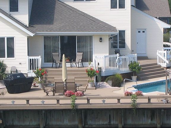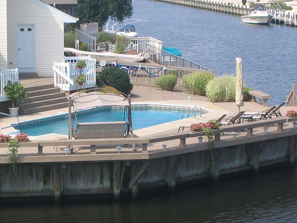 Magnificent 1 of a kind custom built home on a wide lagoon,with water on two sides of the property. Upstairs the home features 4 extra large bedrooms & 2 full baths. Downstairs has a great open floor plan with plenty of room for large scale entertainment all year long. Home has HWBB heat and has 4 zones, plus a full bathroom downstairs. Crossing into the outdoor area with tiered decks and in-ground pool, with heated & air conditioned full outdoor bath. Whole house generator, 40 solar panels with a 20 year transferable prepaid lease. Great view, easy access to bay.
