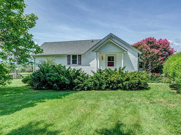 Cute, L-shaped ranch featuring three bedrooms and 1.5 bathrooms. Open floor plan with large kitchen area with all appliances included. Large deck, covered front porch, and fire pit area to enjoy the beautiful mountain views. Inground salt water swimming pool w/fencing for lots of summer fun!! Property has two pasture areas and a 2 stall barn with power and approximately 1,000 sq feet-that includes a tack room and possible changing area w/sink off barn (never used by seller). There is also a storage shed for even more storage. Lots of updates: Heat pump -6 years old, double low-e Argon windows -16 yrs old, etc. Septic system 7 yrs old, etc. There are also two pasture areas -~1.5 acres w/board fence w/hot wire and ~.5 acres w/reinforced wire. Views, location, this home has it all!