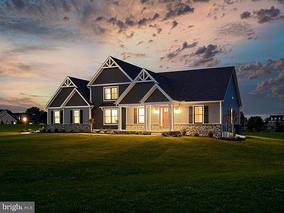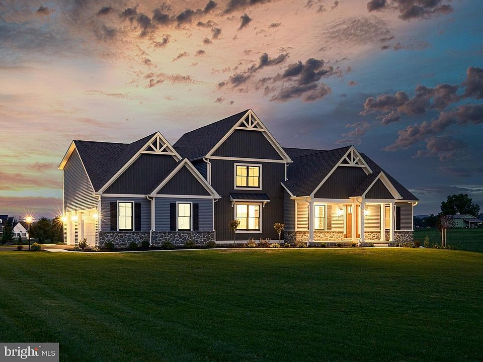 68 North Dickinson School Road is a highly upgraded contemporary craftsman estate home sitting on 2.46 level acres in the beautiful Lindenwood community. The home and community afford panoramic views of the Cumberland Valley, South Mountain to the south, and Blue Mountain to the north. At the end of the extended driveway, find an oversized 3 car garage- complete with 3 bays and a pedestrian door. Vertical and horizontal siding contrasts against the black Andersen 400 Series double-hung wood-frame window package. Approach the front door and note the large, covered porch, with sunset views to the west. Stepping into the home via the 8-foot stained door you will immediately appreciate the beautiful high grade hickory LVP flooring spanning the entire first floor. Your eye is then drawn through the spacious foyer and living area to the expansive quad window providing sweeping rear yard views beyond. To your left, a dedicated office can be seen through the sliding glass barn doors, two sets of which adorn the room on its southern and eastern walls. Moving further into the space, turn right and enter the private master wing of the home, noting the powder room to your side. Turning the corner, the spacious master bedroom comes into view, with exposed beams, a cathedral ceiling, and double window providing ample natural light and volume to the space. The attached bath features double vanities, a linen closet, custom oversized tile shower stall, and a spacious walk-in closet with designer shelving. Returning through the master to the living room, take in the cathedral ceiling, complete with wood-stained exposed beams and an abundance of recessed lighting that continue through to the kitchen. Centered on the righthand wall of the living room is a propane fueled fireplace finished with a fieldstone profile and stained beam mantle. The kitchen stuns with its massive 10-foot by 4-foot custom island, stained wood floating shelves, and stainless-steel appliance package. The kitchen island and surrounding cabinets are topped with a high-end granite, and high grade extended height recessed wall cabinetry surrounds the space. To your left you'll find an oversized walk-in pantry, which features high grade cabinetry, a granite countertop, outlets for appliances, a built-in beverage center, a large and bright double window, and extensive shelving. Off the kitchen, a dedicated mudroom provides entry to the garage, as well as cubbies for storage, and stair access to the full-footprint basement with Superior Walls foundation and outdoor access. The kitchen opens into a spacious dedicated dining room, which features its own Andersen Frenchwood Sliding Door access to the large rear covered porch, and a brilliant triple window that frames the rear yard. Turning the corner, note the dedicated laundry to your right complete with wall cabinets and shelves as you continue upstairs. The second floor reveals three spacious additional bedrooms, two of which are connected via a Jack-and-Jill full-bath, complete with double vanity, and each features a walk-in closet. The third bedroom is itself a proper suite, with a connected private full-bath and a spacious closet. Every bedroom in the home features an attached bath. Three distinct heating-and-cooling zones and an energy efficient dual-fuel heat system further ensure the comfort of guests and family throughout the home. Truly a 'must see' premier Artisans Design Build / Hutch Homes collaboration. This fully-finished model home is available to tour by appointment.