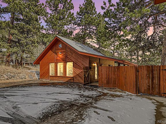 Multi-gen, Well-maintained Evergreen West home with Cabin or art studio for rent at $1,800/mo. Nestled on a picturesque 1.03-acre lot, this 1978-built 2-bed, 3-bath home combines charm with extensive upgrades—the freshly painted exterior and soon-to-be-installed new roof. A fenced rear yard offers privacy, the 2-car garage provides ample parking and storage, and a paved level driveway. The upper level boasts a remodeled living room with engineered hardwood floors, accent walls, and a gas fireplace framed by a stacked rock hearth under a wood cathedral ceiling with skylights. The kitchen shines with granite counters, Alder cabinetry, new stainless-steel Jenn-Aire appliances, and a spacious walk-in pantry. The adjoining dining area has a security screen door and a deck walkout. Primary suite, wall-to-wall carpet, a mini-split A/C unit (also in liv rm), a large walk-in closet, and an en-suite bath with ceramic tile floors and a step-in shower. The 2nd bedroom serves as an office, while the additional bath on this level includes hardwood flooring, a resin countertop, and a ceramic tile shower/tub. The entry has engineered hardwood floors, a stacked rock accent wall, and a stylish chandelier. The lower level family room features wall-to-wall carpet, a moss rock stone hearth with a pellet stove (unused), and a covered patio walkout. The lower-level bath has granite counters. New 2024 Laars gas boiler, 50 gl water heater The 800 sq. ft. studio-style cabin is perfect for cozy mountain living or as an income property! This studio cabin is NOT permitted, features an efficient kitchen with a double-bowl sink, electric oven/range, microwave, and refrigerator. A gas stove adds warmth and character to the open living area. The updated bath includes a large step-in shower, commode, and sink. Enjoy the outdoors with a covered side porch entry, fenced yard, and convenient paved parking. There are 2 Mitsubishi mini-split AC units.