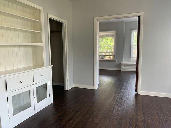 Generous 1 bedroom unit in a commanding historic building. Wood floors throughout. Kitchen with a wood countertop. Built-ins, pocket door, window seat, gas stove, high ceilings, lots of windows. Mini-split. Laundry on site. Free off-street parking. Tenant pays gas and electric. Cats okay but no dogs. No smoking. Not a Type A accessible unit. Tenant pays for gas and electric. Water, sewer, and garbage included.