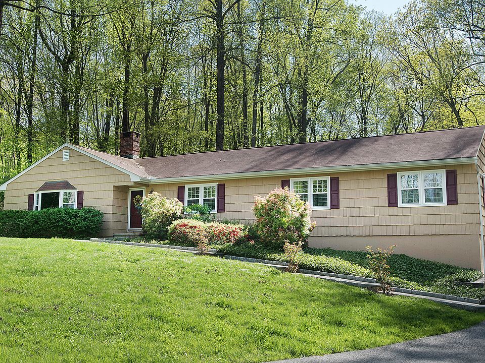 New England ranch nestled amongst million dollar homes shines with sophisticated country charm. Situated on one flat acre bordered by a spring-fed stream and ridges, park like setting w/exceptional privacy. The home is tailored to accentuate the natural beauty of the exquisite property with stone walls and perennial flower gardens. Spacious living room w/traditional fireplace, wood burning stove in the updated granite eat-in kitchen with tile backsplash and new matching appliances. Adjacent dining room accommodates formal entertaining. The sun drenched family room with sliding doors provide a light and airy atmosphere showcasing the beautiful outdoors. This home offers 4 large bedrooms and 2 updated baths. Recent updates include: interior and exterior painting 2017; generator and wiring (2015); windows (2012); kitchen granite tile floors and appliances (2016), roof (2008), driveway (2010) furnace (2008) and much more. The two car garage leads into an additional enormous newly finished bonus room, separate laundry room and plenty of storage space. Convenient to town, Route 7 and easy access to NYC. Please Note: Brand new septic system being installed March/April 2019 by Jeff Nota (as soon as weather permits)