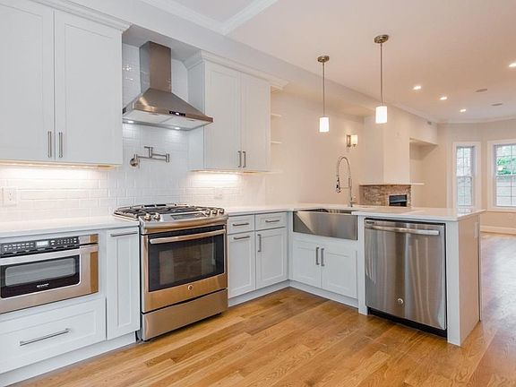 Introducing the residences at O street. Last unit left! Two sleek brand new units that have been transformed from a classic South Boston two family into modern, stylish two bedroom condos that hit every item on your check list. Mastery of design, quality, finishes awaits you. Open layout, white oak hardwood floors, true chef's kitchen with breakfast bar luxury appliances not even found in million dollar properties (including vented hood, wine fridge, pot filler, quartz counters to name a few). Slider to a large composite private deck w/ direct gas connection. Top floor unit features high ceilings, lots of windows light (the light pours in). Stacked stone fireplace in living room with separate alcove for dining or office. Two huge bedrooms with lots of closet space. Master suite features two sinks, jet tub. Skylight, Nest thermostat, surround sound, 2 ZONE central A/C.
