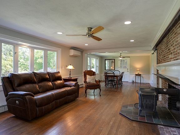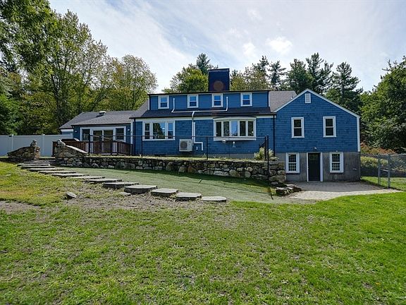 Classic Cape Cod-style home designed by renowned architect Royal Barry Wills, showcasing timeless New England charm. Set on a country road, this inviting home is framed by stone walls & backs to Bower Springs conservation land w/ scenic trails & ponds. The sprawling fenced-in backyard is perfect for pets or play, w/ a stone patio, deck, shed & side-entry mudroom. Inside, hallmark features include an impressive center chimney fireplace w/ wood stove, custom millwork, wood floors, beamed ceilings & curved garage archways. Featuring a warm country kitchen w/ a brick fireplace, adjacent to the laundry room. Flexible layout offers 1st & 2nd floor main bedroom options plus 4th flex room ideal for an office or nursery. Expansive walk-out lower level w/ kitchen, workshop & handy dog wash station; ideal for pet lovers, hobbyists or multi-generational living. New high-efficiency Presby septic & fresh paint, plus seller improvements: roof, windows, well, oil tank, furnace, fencing, solar & more!