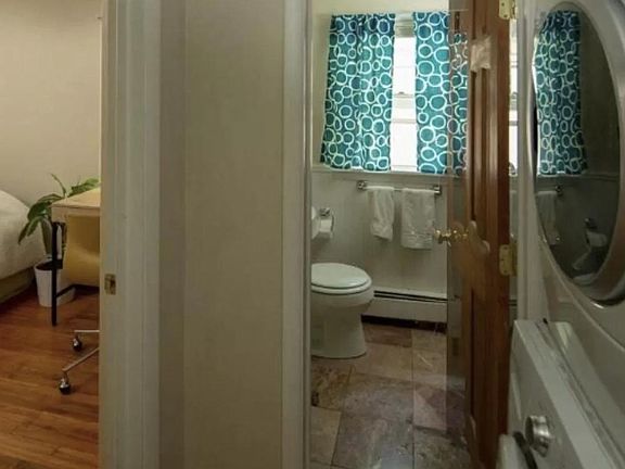 Ground floor apartment, 2 bed (or 1 bed + 1 office) 1 bath (shower & tub), living room, kitchen. Within New Hope Boro. Quiet street with mature trees; serene but easy access to town. Private driveway, off-street parking spot. In-unit washer & dryer, eat-in kitchen with dishwasher, stove, oven, bar/island and separate dining area. Living room with large windows overlooking wooded stream. Hardwood floors. Cornerstone Fitness gym, McCaffrey's grocery store, CVS, Wawa, post-office, gas station all within 5min walk or 1min drive: close but you don't have to look at all of it from home. New Hope Solebury school district (New Hope Solebury Upper Elementary, Middle and High schools 3min walk up the street). No smoking. First & last month rent and one month security deposit due at signing ($7500 total). Credit & background check required (accepting application with credit score 670 or higher). Landlord pays water, sewage, trash, recycling, lawn & garden care. Tenant pays electricity, heating oil, AC, phone, cable.