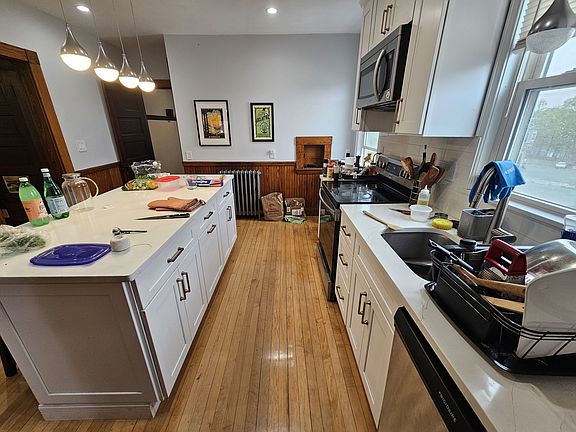 Sun drenched 4 bedroom apartment located in bustling South Waltham available for September 1st. Kitchen has sleek updated shaker cabinets and quartz counter tops, stainless steel appliances, including induction stove top, dishwasher and fridge. You have an open living space with massive living room and dining room. Access to 2 private balconies. There are laundry machines in the basement and easy street parking! Tenants pay all utilities. water is included. Cats are welcome, no dogs (firm). First Months rent, 1 months security deposit and one months broker fee for move in cost. near many shops, restaurants, cafes, gyms, parks and grocery stores. landlord pays for water. no dogs. no parking. second bathroom being added construction should be complete by move in