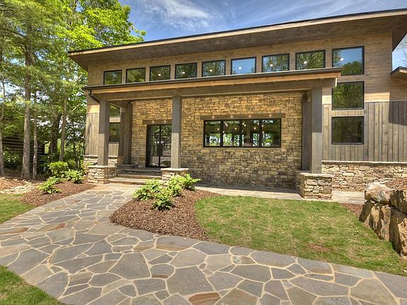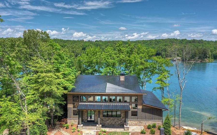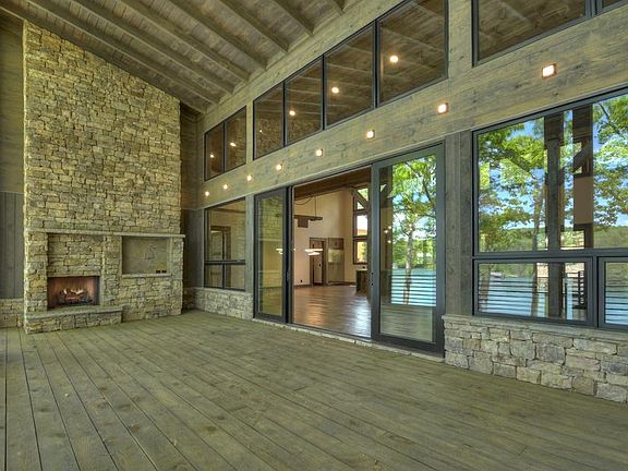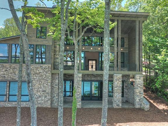 Gorgeous new modern construction home on Lake Blue Ridge. This home is perfect for entertaining with 2 outdoor fireplaces and 2 party decks. Huge master suite on main floor with wall of windows overlooking the lake view. Enormous kitchen with Viking appliances, custom cabinets and rock counter tops with waterfall edge. Butler's pantry complete with dishwasher and microwave. Vaulted ceilings, custom iron contemporary handrails. Below are 3 bedrooms with 3 full baths and another entertainment kitchen and bar with wine cooler. Bunk-room features two sets of triple queen size bunks. Gorgeous landscaping and parking for plenty of guests. Loads of upgrades. Only a few minutes from town on a paved road. Year round deep water and beautiful view on the lake.
