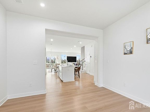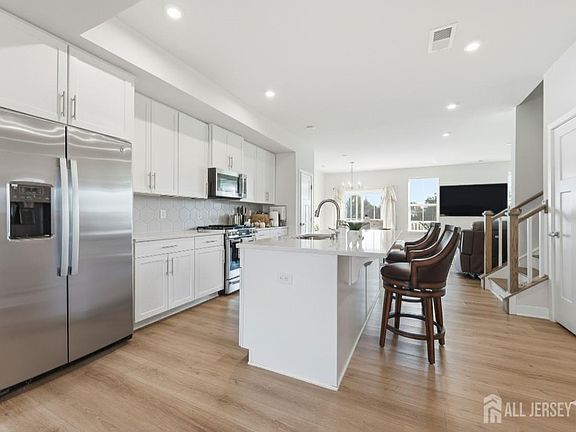 Discover modern comfort and style in this brand-new 3-bedroom, 2.5-bath home showcases high-end finishes and a perfect blend of modern style, space, and comfort. Step inside to an inviting open-concept floor plan, where the spacious living room flows seamlessly into the dining area and gourmet kitchen featuring upgraded whit cabinetry, quartz countertops, a cooktop, and a large island overlooking the dinette and great room perfect for entertaining. The main level is enhanced with luxury vinyl plank flooring and extends to a spacious Trex deck for outdoor living. Upstairs, you'll find three generous bedrooms, including a luxurious owner's suite with high ceilings, a custom closet system, and a private bath with dual vanity. Recessed lighting brightens every room. Additional highlights include two more well-sized bedrooms, a convenient upstairs laundry room with brand-new washer, dryer, and utility sink. Located in the heart of the city, this home offers easy access to shopping, dining, major highways and NYC via train or bus everything you need right at your doorstep.