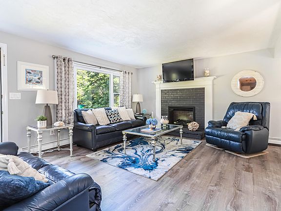 Wonderful light and bright 3 bedroom 2 full bath wood burning fireplaced home. Set in a wonderful neighborhood just around the corner from all that Mashpee Commons and Cotuit has to offer! A quick 1.3 miles to Mashpee Pond as well. The home features New luxury vinyl plank flooring throughout, a generous sized 1 car garage, Roof done in 2017, & updated First floor laundry for easy living. Primary bedroom has en suite bathroom. The electric fireplace insert in the is perfect for those fall chilly nights before a night out. A full generously sized finished basement included in the mls sq footage (1056 main floor and 950 sq ft finished basement) is also ideal for football season and there is a *BONUS ROOM* as well. Plenty of room in the large fenced backyard to entertain for all of your outdoor bbq's and firepits. Title V is passing and located in the front yard in case you have been longing for a pool! Turn key all you need to do is bring your bags. Furnishings are negotiable.