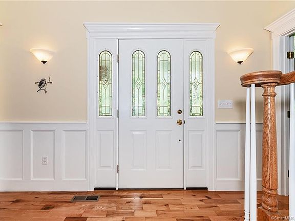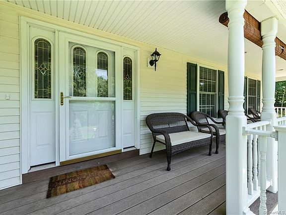 Beautiful nearly new high-cape sitting pretty on 1 acre in Southbury. Enter though expansive front porch seating area with Trex decking, shuttered windows and roll-down shades. Main level is all on hardwood floors and presents the master bedroom & bath with a walk in closet to one side and the living area with fireplace, dining room and spacious eat in kitchen to the other. The kitchen has wainscoting, dark cherry cabinets, granite counters and all stainless steel appliances. Upper level also features hardwood flooring, 2 additional bedrooms and full bath. Lower level provides finished basement for recreation and entertainment. The home has a spacious rear Trek deck and auto retractable awning for comfortable gatherings or alfresco dining. The property is partially fenced and provides an over sized 2 car garage with only a 10 minute drive to Main Street in the heart of Southbury's shopping, dining and entertainment district. Additional energy features include a 16kw Generac Home Generator with automatic transfer switch Privacy yet close to town and shopping.