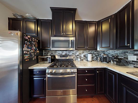 Exceptionally Decorated! This Stunning Home has 3 Bedrooms, 2 Full Baths & 2 half baths on 3 floors of Luxury Living. Boasting Hardwood Floors throughout including 1st Floor Family room w/ sliding door to the patio. Luxury Kitchen Package on 2nd floor with 9' ceilings, 42 inch Kitchen Cabinets, SS Appliances and Center Island Ideal for Entertaining all Accented w/ Built in Surround Sound Speakers. Ring Doorbell,Slider to composite Decking Balcony. Dining room & Open Floor Living Rm w/ large Bay Window. Master Bedroom w/ Dbl En-suite Shower & Vanity, Generous Walk-In Closet. 2 Additional Bedrooms & Dedicated Full Bath on the upper level as well. Fire sprinklers inside. 1 car garage and driveway for parking. Close to Shopping, mass transit (bus &train),