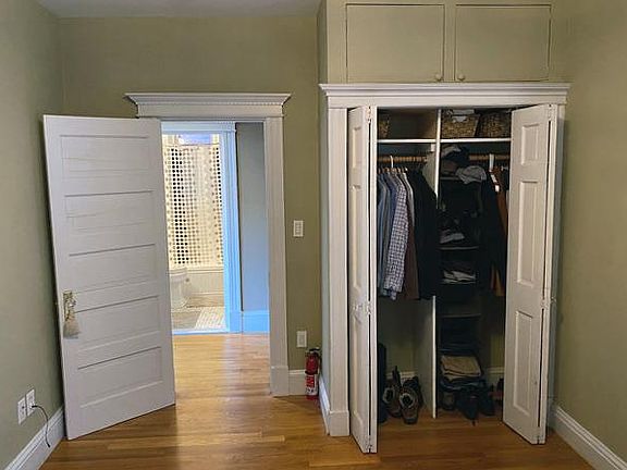 AVAILABLE JUNE 1. Newly renovated, front-facing unit includes an updated kitchen with stainless steel appliances, BOSCHE fridge w/ ice maker, Washer/Dryer, gas stove. Other kitchen amenities include double-tiered kitchen cabinets, roll-out pantry, and two pull-out spice racks - a chef's dream! Ample storage throughout the unit includes living room built-in, 'hidden' living room coat closet, two bedroom closets, plus an oversize above-closet storage cabinet for larger items. Luxury bathroom details include Carrera marble and timer-activated fan and heat. Sunlight pours in through front facing windows and highlights brand new hardwood floors! Sorry, no pets. Building is non-smoking. Heat and hot water is included.