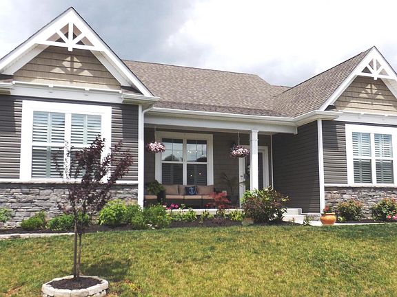 WOW is your expression as you walk through the door of this impeccable rancher style home. Hardwood flooring through the main living areas. Formal DR with lots of room for entertaining. Gourmet kitchen features a 10' island, granite counter tops, stainless steel appliances, beautiful upgraded cabinetry, overlooks the great room with its beautiful gas FP, and steps out to the stamped concrete patio with hot tub. Raised beds for gardening and lavishly landscaped lot. Owners suite offers ample space, walk in closet, double bowl vanities, and walk in shower. Walking down to the basement, rec room and sitting area offers stone gas FP, room for pool table and then there is the 6 person Amish oak bar with its custom top, fully equipped kitchen, great for summer canning, entertaining and much more, separate for den or exercise room. A full bedroom and and full bath compliment this basement. Some other extras are tinted windows, custom shutters, custom painting. This house will fit all of your needs.