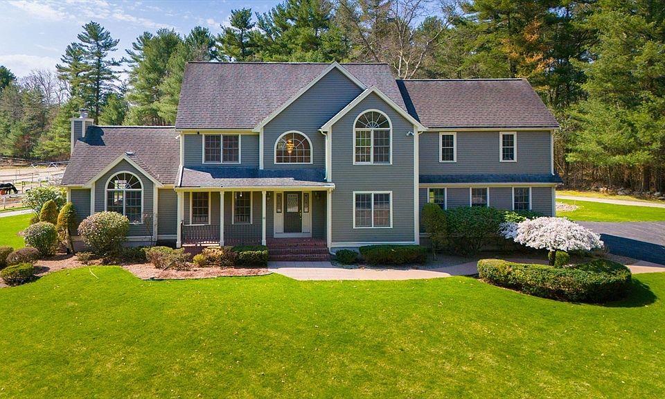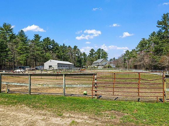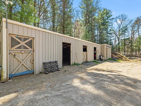 Rare offering; attention equestrian enthusiasts, car collectors, landscapers or farm-to-table lifestylists. Find the beauty of bucolic living with convenience and comfort of this Contemporary colonial built in 1998, sited on 4.72 acres; a blend of modern day living and equine charm and amenities.  Set in a small neighborhood of upscale homes, the home has a flexible & open floor plan. Kitchen has granite counters, center island, white cabinets and eating area which opens to FamRm with gas fireplace & cathedral ceiling and to the DinRm w/ hardwoods.  4 Season Rm with access to large deck, heated above ground pool & patio. 2 story foyer & open staircase leads to Main bedrm w/ vaulted ceiling, fireplace, multiple closets & private bath with jacuzzi. 3 additional bedrooms w/ ample closets and full bath. Exterior features: indoor riding ring, 20 Stall Barn, 4 stall barn, separate paddocks, chicken coop & more. Irrigation system, whole house generator. Lower level is ready to be finished