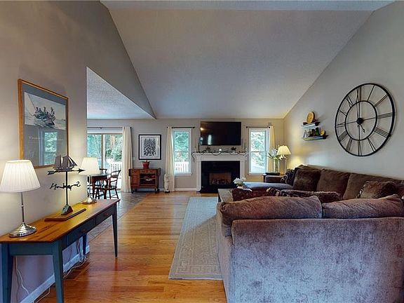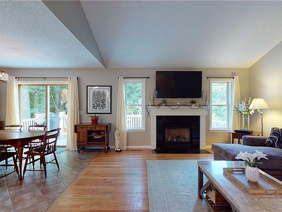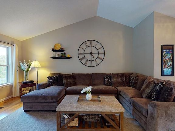 Spacious ranch in a sought after neighborhood with open floor plan and vaulted ceilings is a must see The main level features an open foyer to living room with vaulted ceilings, gas fireplace and hardwood flooring that's open to the dining area with sliders to 25' composite deck and remodeled kitchen with granite counter tops, recessed lighting and pantry cabinets. The interior has been freshly pained throughout with neutral colors. The master bedroom includes a full bath with jetted tub, vanity with double sinks and separate tile shower + a walk in closet, vaulted ceiling heights and hardwood flooring. Two additional bedrooms both have hardwood flooring and one also has a vaulted ceiling + palladian window. The 2nd full bath is also remodeled with full shower/tub. Bonus: The finished walk out lower level boasts 34' x 32' game room complete with wet bar - carpet, open floor plan and tons of extra living space. There is also ample storage + washer/dryer in LL. Additional amenities include gas heat, central air conditioning, city water and sewer + an attached 2 car garage, vinyl siding, thermopane windows and spacious maintenance free deck overlooking small pond surrounded by lightly wooded backyard + small covered front porch and nice curb appeal Beautiful opportunity to own an over-sized ranch in this neighborhood with nothing to do but move in.