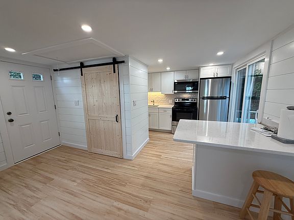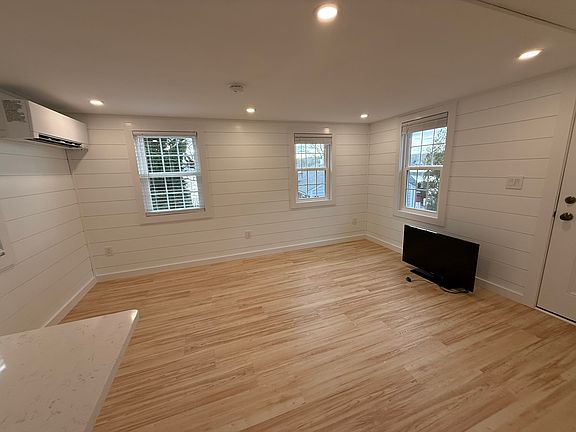 Available now - Fully renovated studio apartment in a detached carriage house. Single level living with new cabinets, quartz countertops, tiled backsplash, stainless steel appliances, and kitchen island. Features include shiplap walls, sliding barn door, mini-split heat and A/C, and a tiled bathroom with new vanity, toilet, and walk-in tiled shower. Private entrance, private deck with pond views, off-street parking, and washer/dryer hookups in basement. Neighborhood beach access. Convenient Cedarville location less than one mile to Route 3. Washer/dryer not included. Tenant responsible for electric, First and last month. Tenant-at-will lease. Available now. No pets. No smoking. Attic for storage only. Trash included