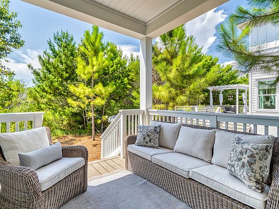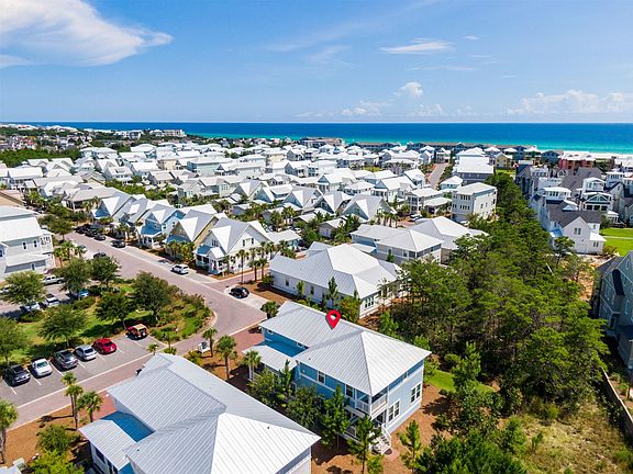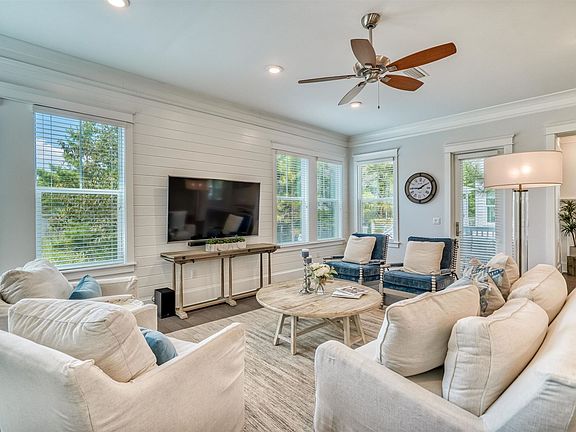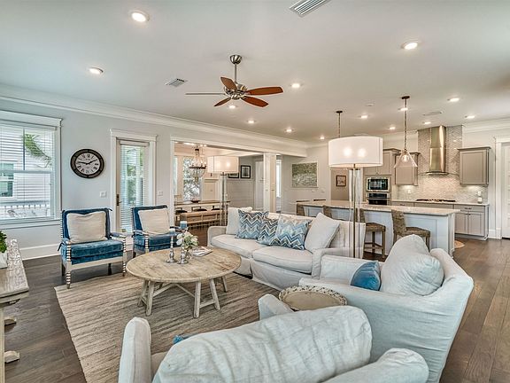 This immaculate residence is sold furnished & includes a golf cart. Never on a rental program the home is over 3,000 square feet of living space & welcomes you with soaring ceilings, abundant natural light, hardwood floors, custom cabinets & much more. An open concept layout allows the living & dining areas to interact seamlessly with the kitchen featuring a large center island, stainless appliances, custom backsplash & large pantry. The spacious, second floor master bedroom offers a spa-like ensuite. Three guest bedrooms & two full baths with tiled showers complete the second level. A two-car garage makes it easy to store all your beach toys! The design of this home is perfect for a primary or vacation residence. With a highly coveted location on 30A's east end Prominence has become