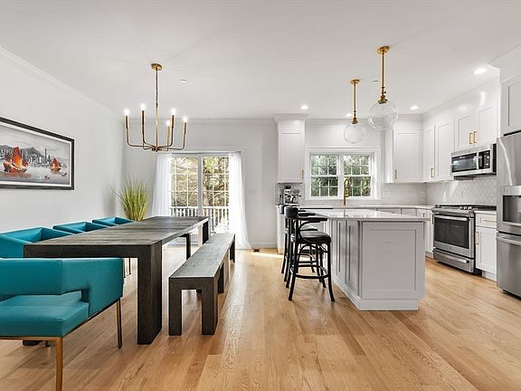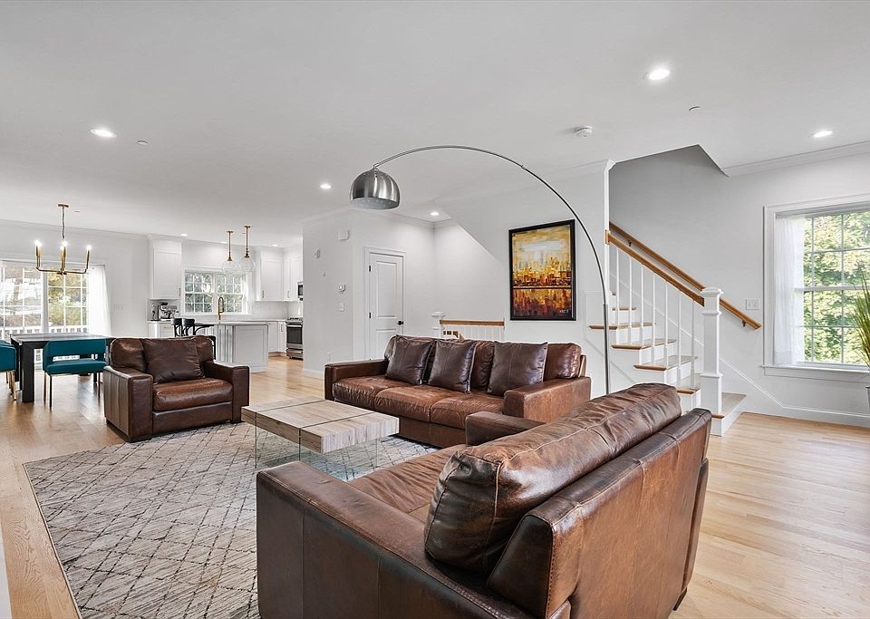 End Unit at the very end of desirable Ashley Court, built in 2023 with today’s modern style—white exterior, black accents, and extra windows that fill the home with light. The first floor offers a private office, while the open main level features 9+ ft ceilings, gleaming oak hardwoods, and a chef’s kitchen w/upgraded white cabinetry, Quartz island & countertops, basket-weave backsplash, stainless steel appliances, and gas cooking with grill. The kitchen flows to a dining room with sliders to a composite deck, perfect for barbecues, and a family room with quartz fireplace—an ideal entertaining space. Upstairs, laundry area, two bedrooms, & two full baths, including a primary suite with walk-in closet and spa-like bath with double quartz sinks and oversized tiled shower. The Top floor offers a cathedral-ceiling flex/bedroom. One-car attached garage extra common parking, and a prime location near public transportation, shopping, dining, trails,& major rtes complete this move-in readyhome
