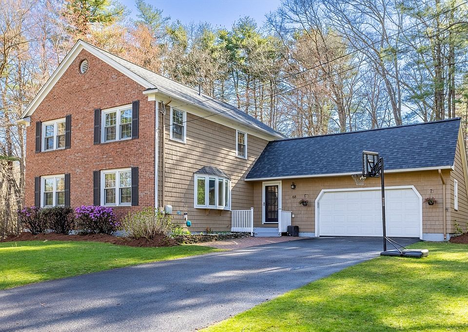 Bright and beautiful! This classic Hicks home features a bright new kitchen with quartz counters, stainless steel appliances and large center island, a dining room with a large picture window and sliders leading to an exterior deck and private backyard, a spacious formal living room, and hardwood flooring that runs through the main living areas and up to the the second floor. There are five rooms w/ closets upstairs, including the primary suite w/ WIC & private bath. All baths have been updated. The finished lower level offers an additional 500+ sq.ft. of living space w/ full windows, built-in shelving and work station. York gas furnace, central AC, on-demand hot water heater and two car garage. BRAND NEW ROOF (2024). Set on a pretty lot in a fantastic neighborhood, close to Westford Center, retail and dining options, and Route 495 for an easy commute.