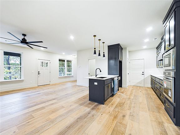Get ready for this one - walk out your front door to hop on the Back 40 Trail. The Perfect Airbnb property or long-term residence with the easiest access to all the trails, golf, greenway, Bentonville Academies, and Bella Vista offerings. 3 bedroom 2.5 bath. With custom cabinets, quartz counters, a pantry, an electric fireplace, engineered hardwood floors, beautiful tile showers, Pella Windows, walk-in closets, a covered front porch & back deck, with energy-efficient appliances, this house is the complete desired package. The house is estimated to be completed by 11/15—seller to offer $5,000 in concessions or closing costs.