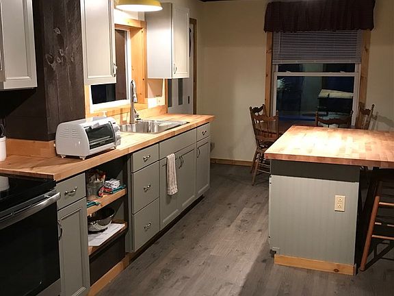This two bedroom, one and a half bath home is conveniently located to all town amenities and just a short drive to Jay Peak Resort. Offers an open first floor living area with a newer kitchen with butcher block countertops, eat at island, track lighting and hardwood laminate plus comfy living area, small office space and half bath. The first floor also includes a large mudroom/laundry and three season porch. There are two bedrooms and a full bath on the second floor. There is also a detached one car garage, fenced in dog area and a front deck where you can enjoy listening to the sounds of the river. The owner spent last year doing tasteful upgrades to the interior of the home.