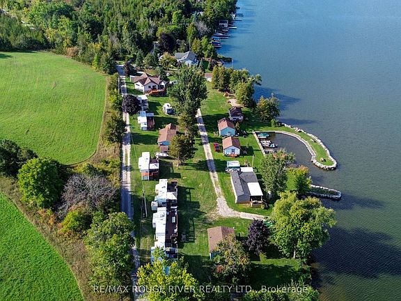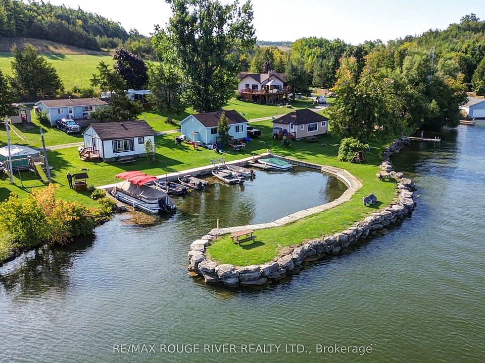 Exceptional Waterfront Resort on the picturesque Rice Lake, boasting over 500 feet of pristine waterfront and a private marina. Suni-Vale Resort offers five charming cottage rentals, ten trailer sites, a versatile garage/workshop, and a distinctive two-story detached home. The detached home, designed in a unique hexagonal shape, was built in 1978. Its main floor houses a renovated 2-bedroom, 1-bath unit with a spacious deck that provides stunning lake views. The lower level includes an office featuring a separate kitchen, lounge, and a bedroom with an ensuite. The cottages include two units with 3 bedrooms and 1 bath, and three units with 2 bedrooms and 1 bath, all offering captivating views of the lake. The resort also boasts three docking areas, a beach area perfect for swimming, a volleyball court, a fish cleaning hut, welcoming fireplaces, a launch ramp, and abundant parking space. Currently the owner resides in the detached dwelling and resort is not run during the winter months. Seize this once-in-a-lifetime opportunity to play, swim, fish, kayak, boat, and unwind on your 3.78 acres of pure bliss with a pebble beach. Whether you already reside or are moving to Northumberland County, it is an exceptional place to call home and run a resort business, featuring captivating rolling hills, and scenic forested trails ideal for hiking, ATV riding, snowmobiling, and cross-country skiing. All this conveniently located just an hour away from Toronto.