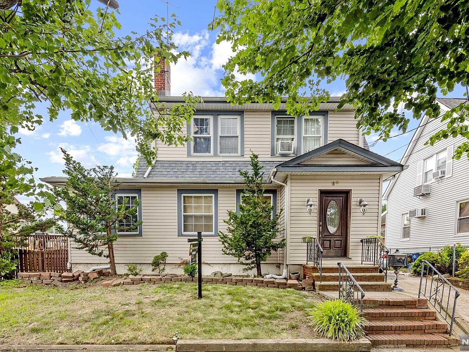 This majestic colonial home offers 1,876 SQ FT of living space in the heart of Elmwood Park. This diamond-in-the-rough features 4 bedrooms and 2 full bathrooms. The first floor includes a living room, dining room, kitchen, inviting sunroom that leads to a spacious backyard, 1 bedroom, 1 full bathroom and a convenient laundry room. The second floor boasts 3 ample bedrooms and 1 full bathroom. The third floor is a walk-up unfinished attic, providing potential for future expansion. The basement is fully finished with two additional rooms and a rec room. Additional highlights include an original fireplace, beautiful hardwood floors, and a massive detached two car garage. The property needs some TLC and is being sold As-Is, Where-Is. Inspections are for buyers' informational purposes only, and NO repair credits will be provided. Conventional, Cash or Renovation loans only.