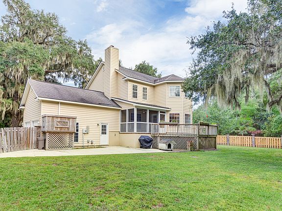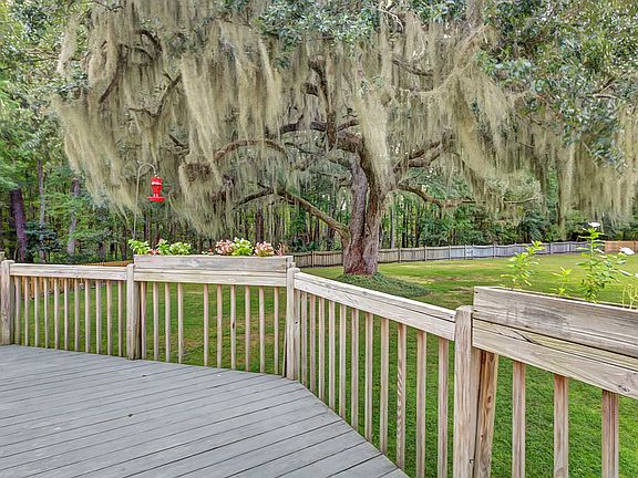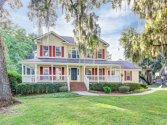 This Beautiful Low-Country Home with moss-draped oak trees, private backyard, & a very spacious lot has fabulous touches throughout! The downstairs has natural looking oak wood porcelain flooring, the kitchen has soft close white cabinets, with black pulls & the countertop is white quartz. The double sink is fireclay, glass pendants hang over the island, along with recessed lights. The formal dining room has built-in cabinets, a wood burning fireplace, & a stylish chandelier. The entry futures a black steel banister, hardwood stair treads & the master suite has a lovely bay window. The master bathroom has wood-like tile flooring, a huge walk-in shower with glass, a barn door for the wash closet, & double vanity sinks alongside a vintage cast iron, claw-foot tub w/porcelain inside. Upstairs guest concrete countertops, subway tile, shiplap, & a cast iron tub. Stop & drop in the laundry room, sink, powder bathroom downstairs & office has built-in shelves, cabinets, & glass double doors.