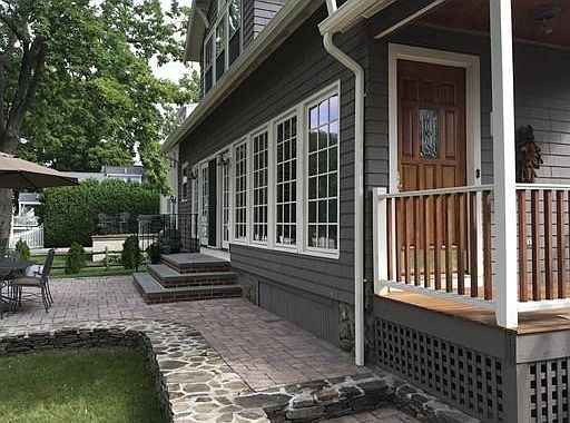 MANSFIELD - Craftsman Cape Style Home on "Fulton Pond". Beautifully restored home loaded with charm in a picturesque setting. Open Eat-in kitchen which is a chef's delight. Gas cooking, vented stove, double sink, built-in pantry closets, ceramic tile leading to an indoor sitting area overlooking the back yard and pond. Dining room w/chandelier and hardwood flooring. Spectacular living room w/beamed ceiling, fireplace, hardwood floors, built-in cabinets, pocket doors. Charming foyer w/built-ins leads to the winding staircase. Three good sized bedrooms all with hardwood floors. Two bedrooms w/walk-in closets are double rooms w/sitting areas that adds to the uniqueness of this home. Two full baths w/ceramic tiled flooring. Full width mahogany front porch for relaxing, Newly installed 20X16 stone patio area that adds to the pleasurable setting. Gas heat, town water and sewer, two car garage with storage area, fenced yard. All within walking distance of downtown, restaurants, Commuter Rail.