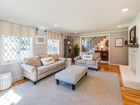 OPEN HOUSES CANCELED - Offer Accepted. Tastefully renovated and expanded gambrel Cape in sought-after, picturesque Framingham neighborhood. 2,800+ sf of style and charm in this beautifully designed home with 4 generously-sized bedrooms, 2 updated baths, elegant living room, 21x15 family room with striking fireplace and enviable gourmet kitchen with granite island and quality Whirlpool stainless appliances. Formal dining room with wainscotting, crown molding and large picture window affording backyard views. Immaculate hardwood floors and recessed lighting throughout complement an open floor plan - perfect for entertaining! Finished lower level with bonus (5th) bedroom/office, playroom and storage. Recent updates include kitchen, baths, HVAC, HW tank, windows, doors, electrical and more. 2 car garage. Enjoy chic outdoor living on a large bluestone patio and covered veranda overlooking meticulously landscaped yard - ideal for all kinds of outdoor fun!