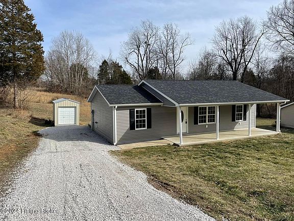 Cute and quaint 3 bedroom, 2 bath ranch within Brandenburg city limits. While the home was built in 2019, it has got all new granite countertops, new stainless steel appliances, new hardwood flooring, new light fixtures, new bathroom vanities, and new toilets. It features a split bedroom floorplan, a large covered front porch, a spacious laundry room located off of the kitchen, and a storage shed that will be included in the sale of the home. Check it out today!