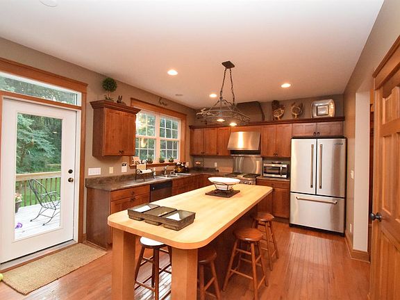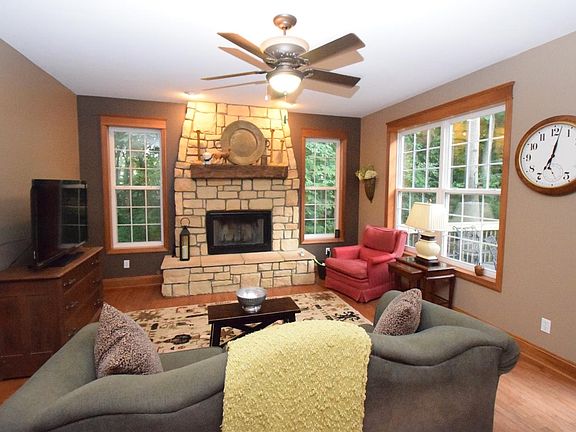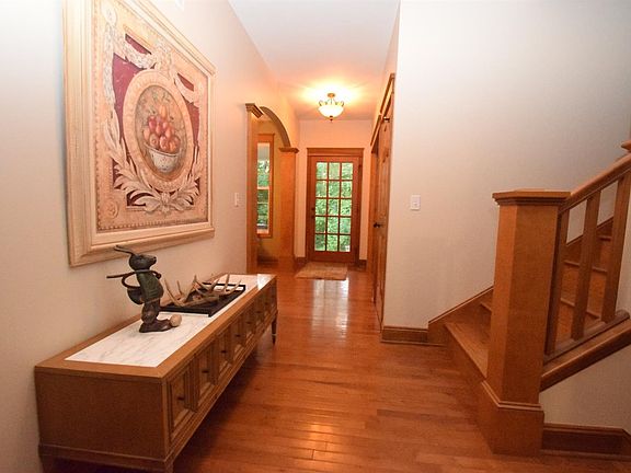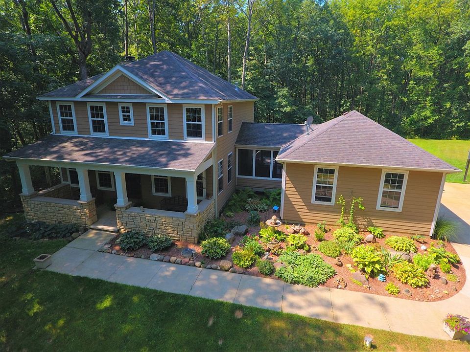 Three bedroom, four bath, two story home built in 2004 sitting on over 10 serene acres. As you drive up, you won't see the house until you wind around and up the hill. The opening at the top of the driveway includes the house with a beautiful breezeway and expansive deck to watch sunrises and sunsets as the wildlife move in and out of the woods. You'll see hawks, deer, owls, wood ducks, wild turkey, and numerous birds. Just off the heated garage is a large concrete pad for parking, basketball, and room for summer parties. You can take the group down the hill for a camp fire, rope swing, and plenty of room for your four wheelers or horses. Once inside the house, you'll love the hardwood flooring throughout the entire main and upper levels. The basement is finished with newer carpet and ingress/egress windows, plenty of room for a pool table or ping pong table. The interior was painted last year. All doors are six panel solid oak. The front door opens to a covered porch.