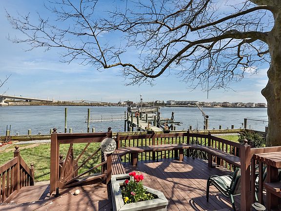 Wonderful Waterfront Location! Hidden Gem with Beautiful water views from most rooms! Walkable to NYC Fast Ferry, Ocean Beaches, restaurants, bars and shopping! Bring your boat or just relax and watch the boat parade and gorgeous sunrises! Dock, riparian grant and boat lift included. Charming Living room with peanut stone fireplace, hardwood flooring and Stunning water views from the walls of windows. Updated kitchen, formal dining room, first floor laundry. Four second level bedrooms including the master suite with full water view, private balcony, separate office or sitting room plus full bath and walk in closet. Be in for Summer, Relax on the multilevel deck overlooking the water. Oversized 1 car garage. Well Maintained home. Flood insurance approximately 2500 per year.