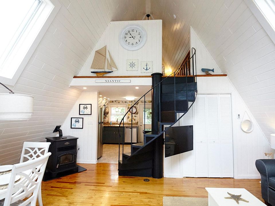 Academic Rental: Available January 2021 through April 30th 2021. Sparkling condition, cozy fully furnished private beach community home. The loft area master bedroom offers 1 Queen Bed. The living room has a pull out sofa for additional sleeping accomodations. The living room with cathedral ceiling and skylights opens to a bright and sunny kitchen and updated bath with double sinks and washer/dryer combination. The outdoor space has a deck in the front of house and a backyard with an outdoor shower. The beach community has a playground with basketball and tennis court, playscape and more. Just a short drive to the Niantic Boardwalk with great restaurants, ice cream shops and shopping. Owner pays water. Garbage pickup included. Tenant pays for heat, hot water and electricity. Pets may be considered with an extra security deposit depending on type and breed.