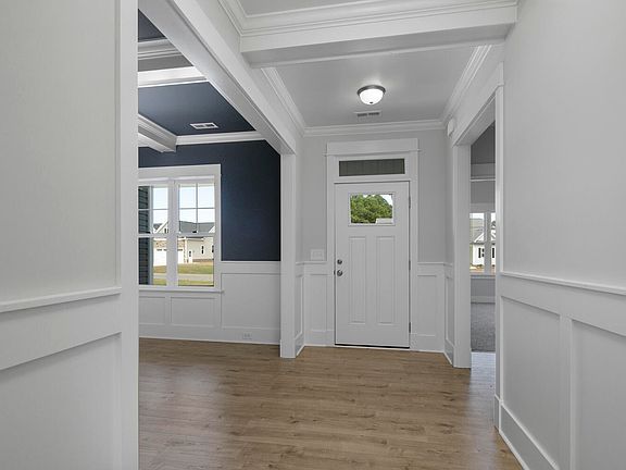 Beautiful new home with 3 beds / 2.5 baths / bonus room / screened porch all situated on a beautiful .81 acre lot. #Interior features *gorgeous open foyer with tray ceiling *tray ceiling w/ coffers & elaborate trim in the dining room *family room w/ gas log FP & cathedral ceiling *granite tops, tile backsplash, eating/serving bar, breakfast area, stainless steel appliances & soft close white cabinets in the kitchen *laundry room with built in cabinets and tile floors*owner suite has cathedral ceiling, recessed lighting, walk-in closet, double vanity garden tub, HUGE tile shower with glass surround & tile flooring *spacious secondary bedrooms #Exterior shows off with *stone around garage door *large screened porch *sodded front yard *rocking chair front porch *finished 2 car garage