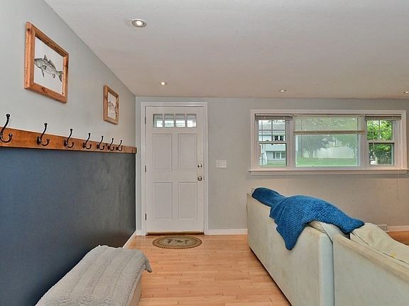 A Ranch can be a rare find in Sagamore Beach - and this one is adorable. This home sits on a flat, level lot with a fire pit and large deck overlooking the backyard. As you enter through the front door, the hardwood flooring throughout welcomes you in along with the cozy wood burning fireplace and shiplap surround. The updated galley style kitchen with granite counters has an exterior entrance for easy grocery access. There's also a convenient dining area with sliding door access out to the yard. Just down the hall is the full bath with vinyl plank flooring, tub and a newer vanity. Located at the end of the hallway are all three bedrooms all with hardwood flooring. There's also a full basement, central air and a partially fenced-in yard. This home is just a short distance to Scusset Beach, Sagamore Beach and the Cape Cod Canal.