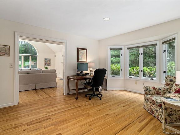 Fabulous opportunity to live on the reservoir on this private property. Impeccably maintained. Spectacular space. House is light, bright and airy in park like setting with easy access to walking trails and Wilton Town Forest. Home has been freshly painted and floors redone. Kitchen was updated in 2017. Generously sized rooms throughout, many with soaring ceilings. The versatile floor plan offers great flexibility for different lifestyles. Huge bonus room over the 3-car garage. Spacious finished walkout lower level has a full bath with shower, sitting area with fireplace and separate room for office, au-pair or potential in-law suite. Walk-up attic is great for expansion or storage. Expansive deck is accessed from multiple rooms and offers seasonal views of the water. This home is a true oasis for the next owners!