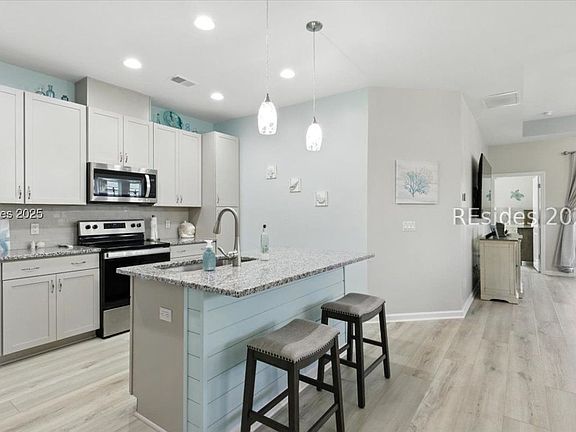 Don't wait to enjoy the Latitude Margaritaville lifestyle move right into this stunning Lucia Model and start living in paradise today, this home has Luxury vinyl plank flooring and tile throughout. This floor plan has a 2 car garage, plus additional room in order to fit a golf cart as well. Set on a quiet cul-de-sac away from traffic, this home offers a prime location and serene greenbelt and wooded views from the open living area and screened lanai. The spacious kitchen features abundant cabinetry, a pantry, and an island ideal for entertaining, with easy flow to the dining area and living room. The primary suite boasts a large ensuite with separate vanities, walk-in shower, private water closet, and a generous walk-in closet. A second bedroom and bath, a large den/office, and an oversized laundry room provide flexible space for relaxing or working from home. Discover tranquility at its finest. schedule your showing today.