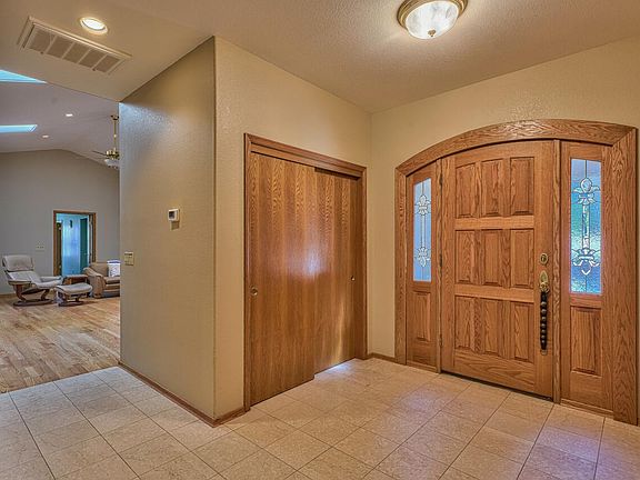 Nestled on a spacious and flat 1.22-acre lot, this property boasts two distinct homes. The main residence, built in 1994, sprawls across 4,042 square feet and features four bedrooms with two and a half baths. A second original house, spanning 1,026 square feet, offers two bedrooms and one bath. Connected by an attached breezeway, these homes present a versatile layout ideal for accommodating in-laws or caregivers or even generating rental income$$ from the second house. The main house welcomes you with a grand open living room, complete with high ceilings that create an airy and inviting atmosphere. A spacious kitchen flows seamlessly into a large family room, providing an excellent space for family gatherings and entertainment. Cedar-lined closets in all bedrooms add a touch of luxury and functionality. Step outside to a sprawling patio area, perfect for hosting BBQs or simply basking in the warm sun. The front house includes a two-car garage, while the back house offers a garage/shop area, catering to various storage and hobby needs. Efficiency is key with an owned solar system, ensuring substantial savings$$ on monthly energy bills. The expansive back half of the lot offers endless possibilities, whether you envision RV/boat parking, a pool oasis, or a sizable workshop.