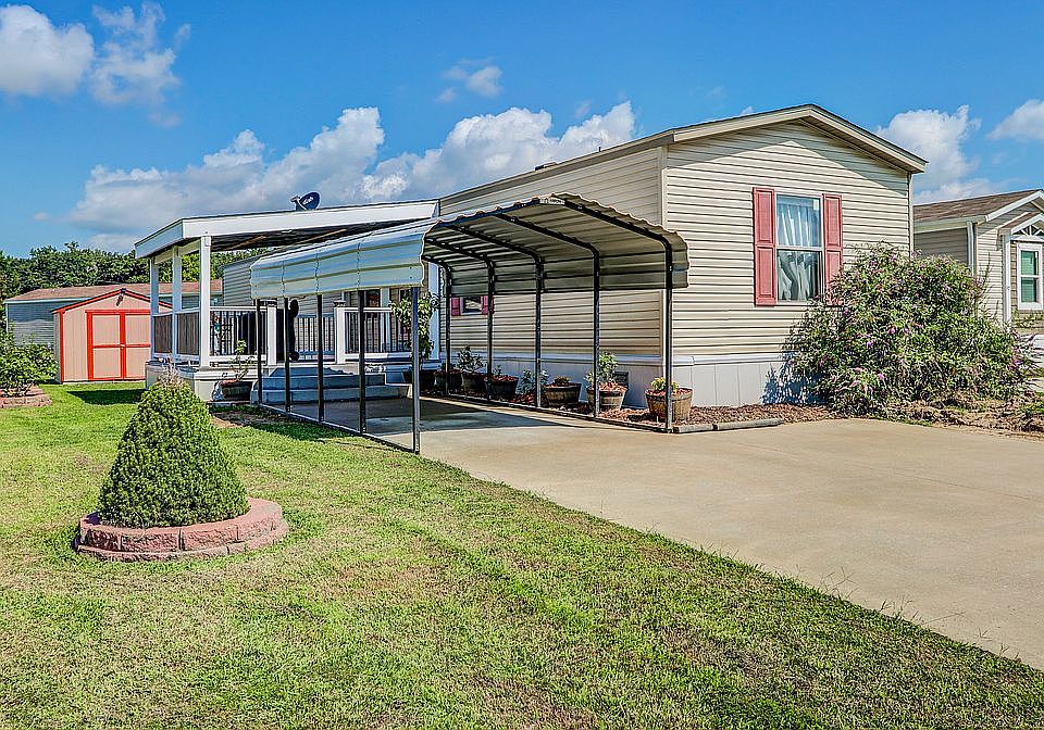 new roof April 2021 with upgraded architecture shingles under warranty, insulated skirting w/ plastic landscaping timbers April 2021, complete ac August 2020 with blue tooth thermostat, composite covered deck 2018, ADT security system with ring doorbell 2018, carport 2018, and10x10 shed July 2017. Flower garden with rock drainage 2017. Lot rent is 330 monthly at Tropicana Village Manufactured Park in Moscow Mills, MO 63362