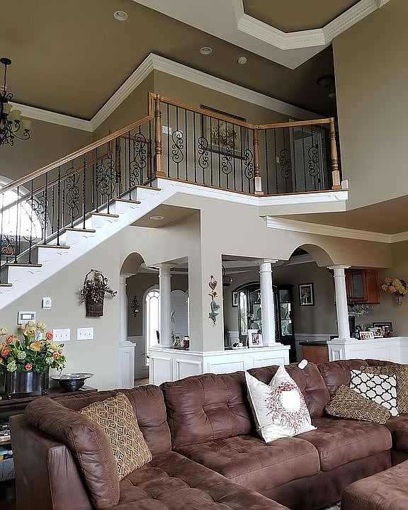 Absolutely gorgeous 1 1/2 story brick & stone home, features 4 possibly 5 bedrooms with 3 1/2 baths, huge eat in kitchen & formal dining room with wet bar, beautiful hardwood floors, granite counters, trayed & coffered ceilings with crown moulding & rope lighting throughout, large great room with beautiful stone fireplace, large master suite & bath with tiled shower, full finished walkout basement with another wet bar, huge in ground swimming pool with diving board, large 2 car garage up and an awesome custom built 35x35 detached garage with its own separate driveway for your boats & toys! All this sitting on 2 acres overlooking farmland. Must see this beautiful home!