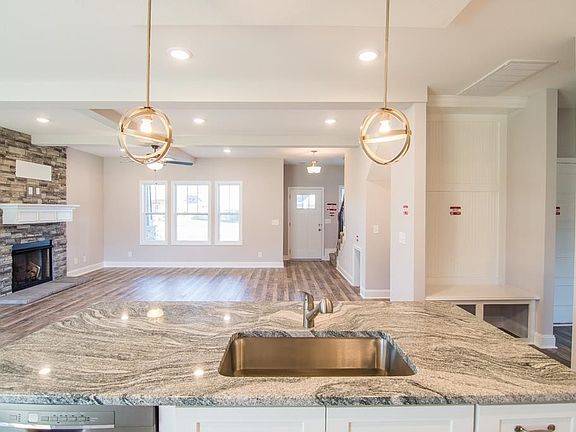 -Large 2 story floor plan. 5 bedrooms, with master on main level and 3 bedrooms upstairs with bonus (or 5th bedroom). Kitchen island overlooks great room with stone fireplace. Covered deck. Tiled oversized master shower. Huge WIC in master. This is A copyrighted floor plan of Hawkins Homes.