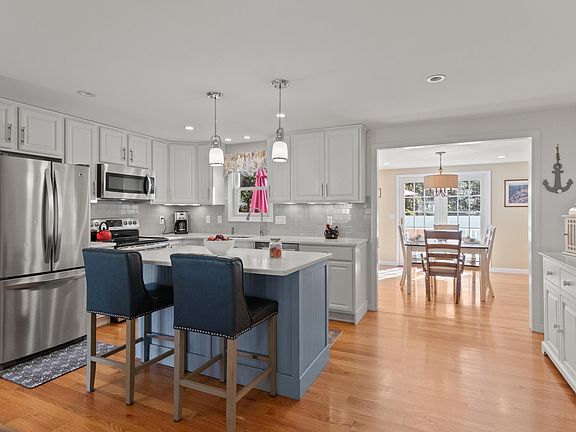 Discover this meticulously maintained ranch-style home on a peaceful cul-de-sac in a prime in-town location. Enjoy the ease of being to shopping, fine dining, ferries, beaches, schools and so much more.Updated kitchen with quartz counter tops & pretty backsplash opens to living room & separate dining room. Pristine hardwood floors, recessed lighting & an open concept layout flows seamlessly. The private primary bedroom boasts an en-suite bath. Private home office/den offers direct garage access.Large finished lower level features a spacious family room & a third bathroom. Step outside to a lovely fenced backyard with a large deck. Additional features include a newer Navien on-demand heating/ hot water and mini split AC. Information deemed reliable & all buyers to confirm. Don't miss this move-in-ready gem!