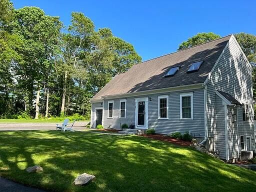 Impeccably maintained, picture perfect, three-bedroom Cape style home in the desirable Wequaquet Lake area in Centerville. Bright and open floor plan featuring a living room with cathedral ceilings, skylights and a fireplace. Dining area with a sliding door to a beautiful outdoor space perfect for entertaining. Situated on one acre, the home features an oversized custom patio overlooking the private backyard. Master suite with a private bath, hardwood floors throughout, first floor laundry, central air, attached garage. The finished walk out lower level with a full bath offers endless possibilities for entertaining, a home office or additional living space. This home has plenty of room for making memories. Enjoy kayaking, boating and swimming at the nearby Lake Wequaquet just down the street. This fantastic year-round or second home, with an impressive Airbnb summer rental is conveniently located minutes from Cragiville Beach, golf courses, highway access, and a variety of excellent restaurants and shops. Buyer and/or Buyer agent to verify all the information herein. Don't miss this beautiful home!