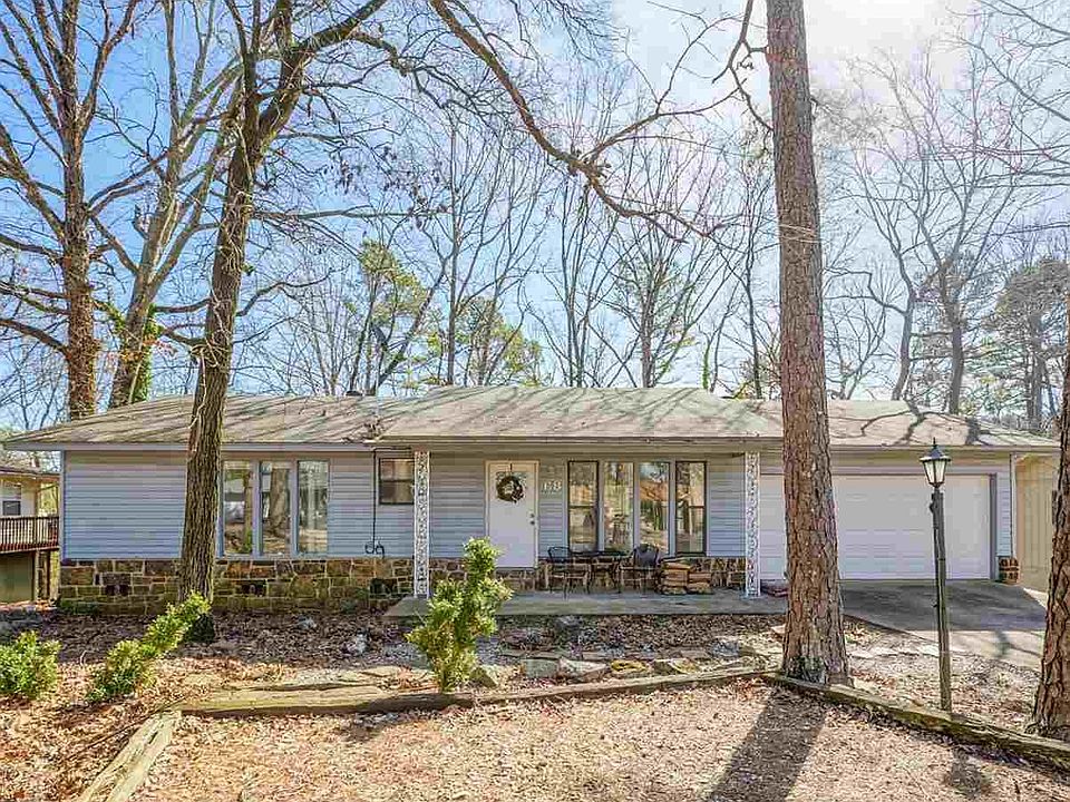 Located near the marina & beach, this charming 3/3 is the perfect place to call home. So many updates including laminate wood flooring, freshly painted throughout, granite counter & new tile in guest bath & much more. Open floor plan w/wood beamed vaulted ceilings in LR & WBFP. Master suite w/enormous walk in closet & tiled walk in shower. Lower level bedroom & bath perfect for guests. Screened in deck for relaxing or family entertaining. Just minutes to the front gate, boat ramp, trails, & golf courses!