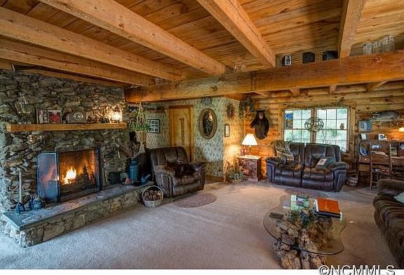 Amazing views from the covered front porch of this Heritage Log home tucked away on 17 acres yet 5 minutes from golf course, downtown dining, and shopping! Large stone fireplace in great room, eat in kitchen, sun room with hot tub on main level. Master plus 2 bedrooms and bath on upper level. Family room in basement plus 2 car garage.